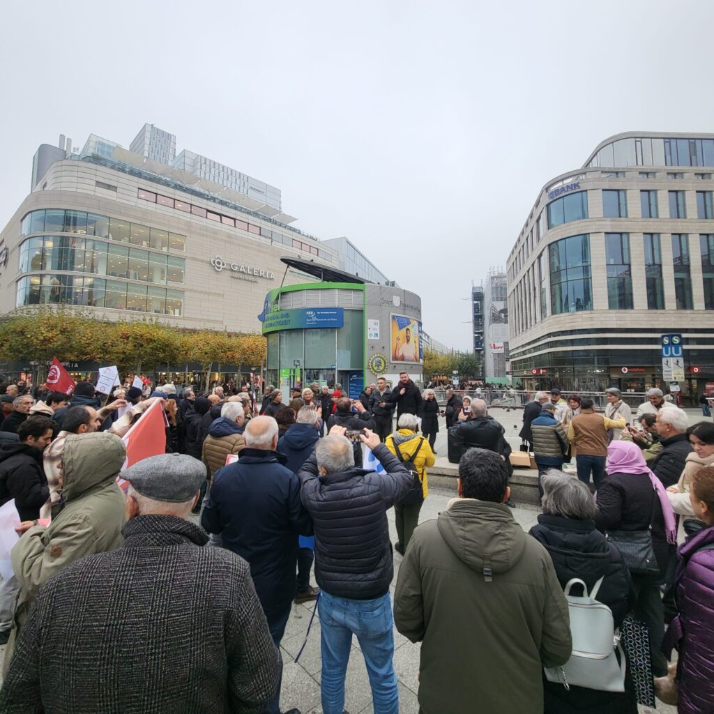 Protestoda başta TELE1 Genel Yayın Yönetmeni Merdan Yanardağ olmak üzere tutuklu tüm gazetecilerin ve yerel yöneticilerin serbest bırakılması çağrısı yapıldı. TELE1’e kayyım atanması sert biçimde kınandı. SPD’nin Hessen Milletvekili Turgut Yüksel ile bölgedeki birçok demokratik kitle örgütü de gösteriye katıldı.