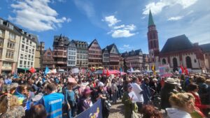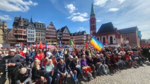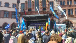 Barış eylemlerinde en yüksek katılım Paskalya bayramının son gününde Frankfurt’ta gerçekleşti. Organizatörler, kentin çeşitli noktalarından ve çevre kentlerden yürüyerek Frankfurt’un merkezindeki Römer Meydanı’nda düzenlenen mitinge yaklaşık beş bin kişinin katıldığını açıkladı. Stuttgart’taki yürüyüşe ise dört bin kişinin katıldığı bildirildi. Münih, Berlin, Hamburg, Köln, Nürnberg ve Duisburg’daki eylemlerde de binin üzerinde katılım gerçekleşti.