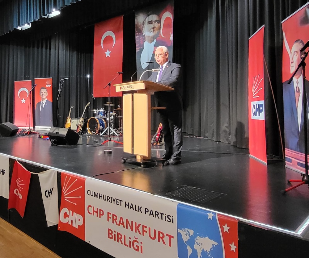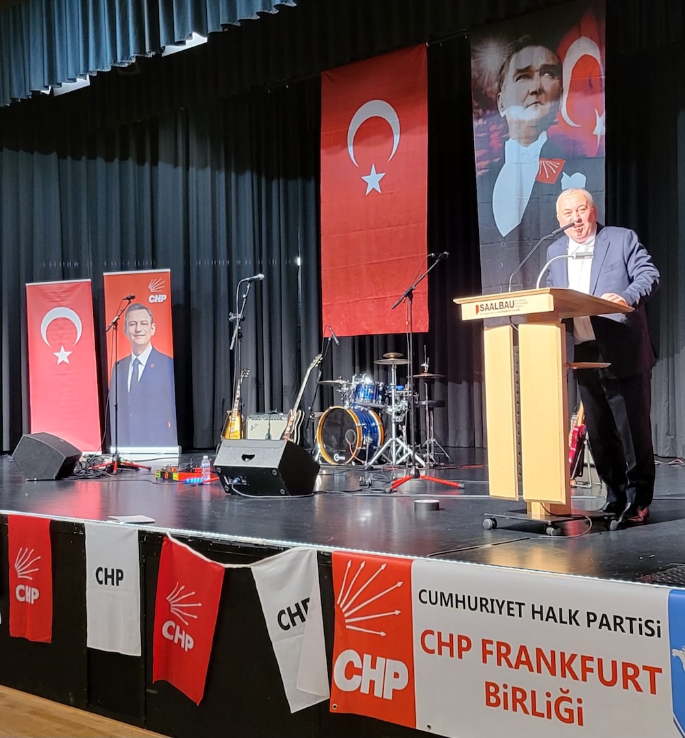 Partinin Frankfurt örgütü, gençlik ve kadın kollarıyla birlikte organize ettiği 102’nci yıl kutlamasına Frankfurt ve çevresinden yüzlerce CHP üyesi ve destekçisi coşkuyla katıldı. CHP Frankfurt Birliği Başkanı Ercan Beğen ve Gençlik Kolları Başkanı Ceren Oğuz’un selamlamalarıyla başlayan etkinliğin Türkiye’den gelen konuşmacıları CHP TBMM Grup Başkanvekili Ali Mahir Başarır, İstanbul Milletvekili Cemal Enginyurt ve Parti Meclisi Üyesi Berkay Gezgin oldu.