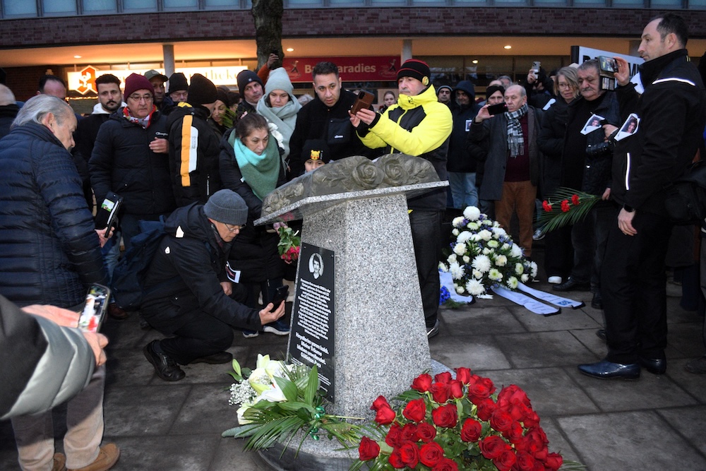 Konuşmaların ardından, sanatçı Vān Ngân Hoàng tarafından hazırlanan ve Türkçe, Almanca ve İngilizce olmak üzere üç dilde yazılan yeni anıt taşının açılışı yapıldı. Etkinlik, meydanın yanındaki meslek okulu salonunda devam etti. Hamburg Nord İlçe Belediye Meclisi’nden İsabel Permien ve Meslek Okulu Müdürü Malte Baumann da burada birer konuşma yaparken, katılımcılar daha sonra Gürsel Yıldırım tarafından hazırlanan sergiyi gezdi.
